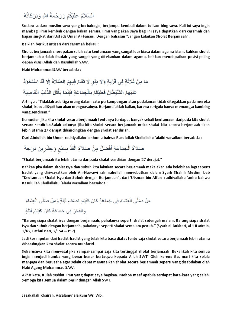 Hadits Tentang Shalat Berjamaah 27 Derajat Latin Nusagates