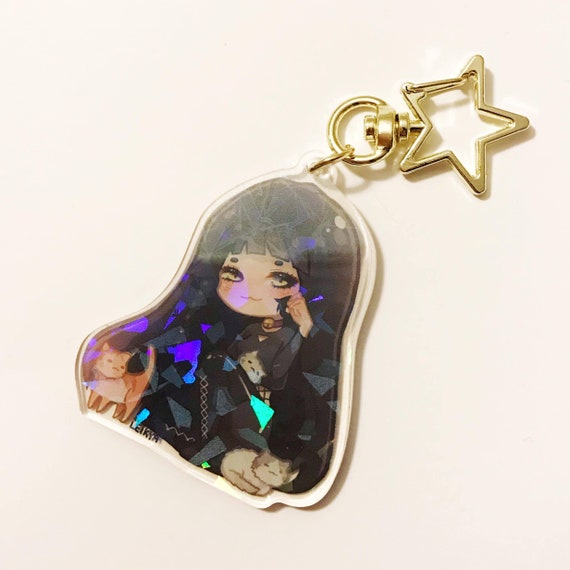 Cute Cat Witch Charm Anime Girl Holographic Acrylic Charm Double Sided Kawaii Chibi Girl