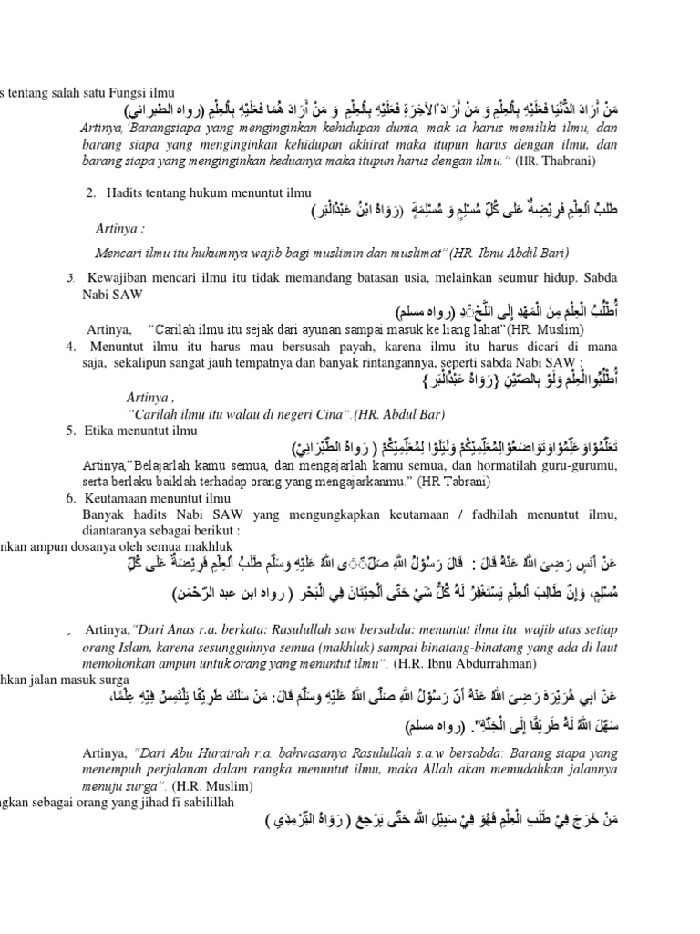 Hadist Menuntut Ilmu Pai Qur An Hadist