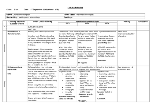 Literacy Planning The Time Travelling Cat Year 3 4 8 Weeks