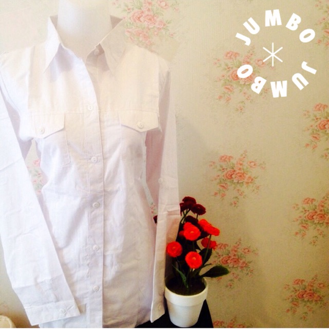 Kemeja Putih Polos Kantong Saku 2 Katun Jumbo