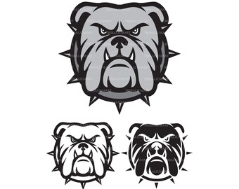 Clipart Illustration Black And White Angry Bulldog Dog Head Cartoon Mascot Character Vector Illustration Isolated On White Background Clipart