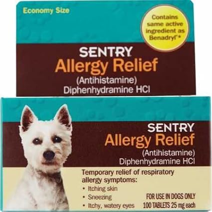 Sentry Allergy Relief For Dogs 100 Tablets 25mg Each