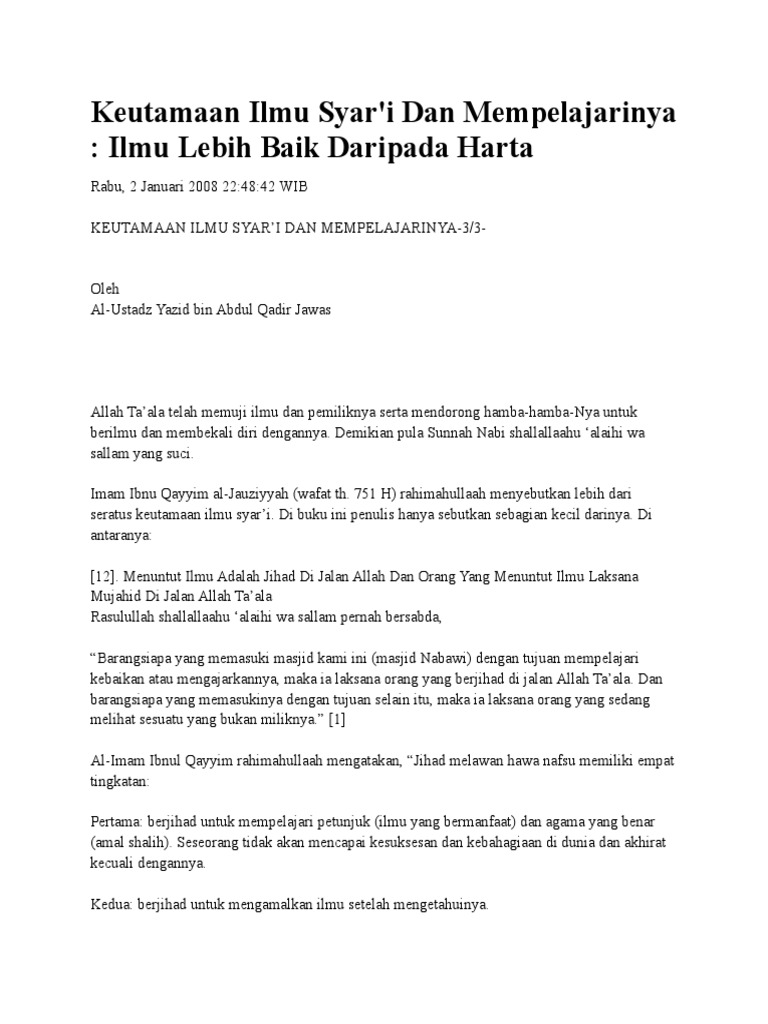 Keutamaan Ilmu Syar I Dan Mempelajarinya Ilmu Lebih Baik